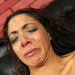 Julietta is a sweet piece of Latina fuck meat who resembles that dumb bimbo from Jersey Shore (Sammi Sweetheart). Regardless, just because a pig resembles a celebrity doesn't mean we treat them as such. Julietta took the full punishment from Tommy Pistol. In essence, today she was pistol whipped! He ran that cock deep down inside her throat until her flat stomach emptied. For a girl who obviously doesn't eat much, she threw up as much as the fatties that grace our couch. This one is obviously stupid... and cheap. Who, from Florida, shows up with a spray tan? I mean... WTF? The sun shines all year down there and this idiot walks in looking like a grammy award with her shitty shade of suck. Anyway... after her throat stretching, Tommy took a run on her tiny oddly shaped cunt. He split her wide open in his favorite positions and then busted a load on her face. We made sure the bitch took her medicine in the form of her eating the jizm with a spoon.